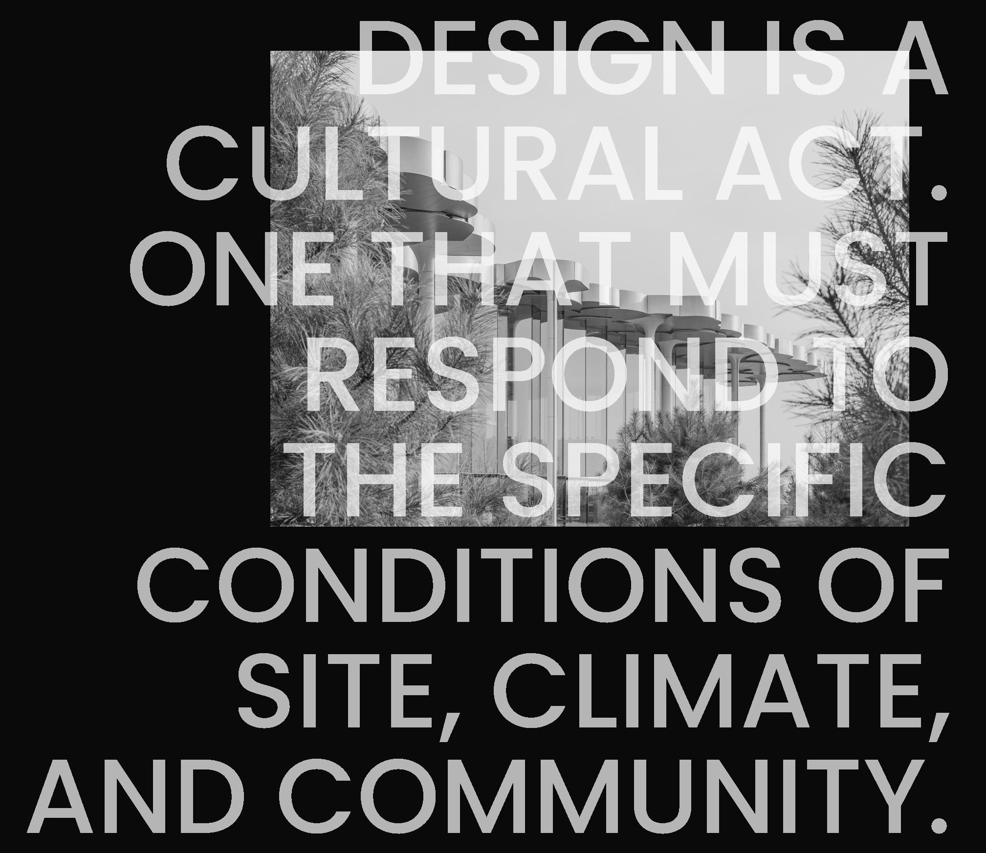 We see design as a cultural act, one that must respond to the specific conditions of site, climate, and community, and contribute meaningfully to the evolving Australian design landscape.